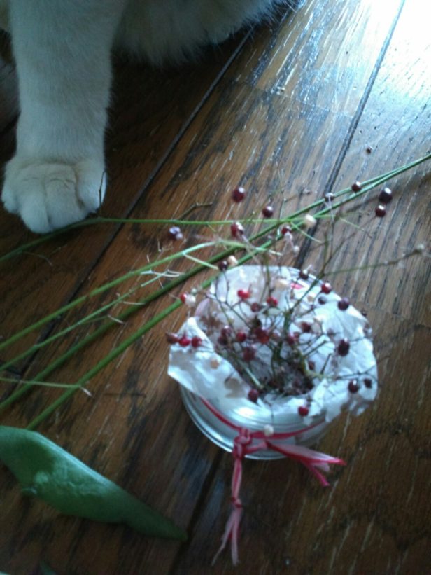 三週間ほどまえに道端で拾ってきたかわいらしい雑草が、種子をつけました。もう弾けてしまっている子たちもいるけど、拾える子はひろって、小瓶に。スズメたちが喜びそうな誘惑の種子たちです。